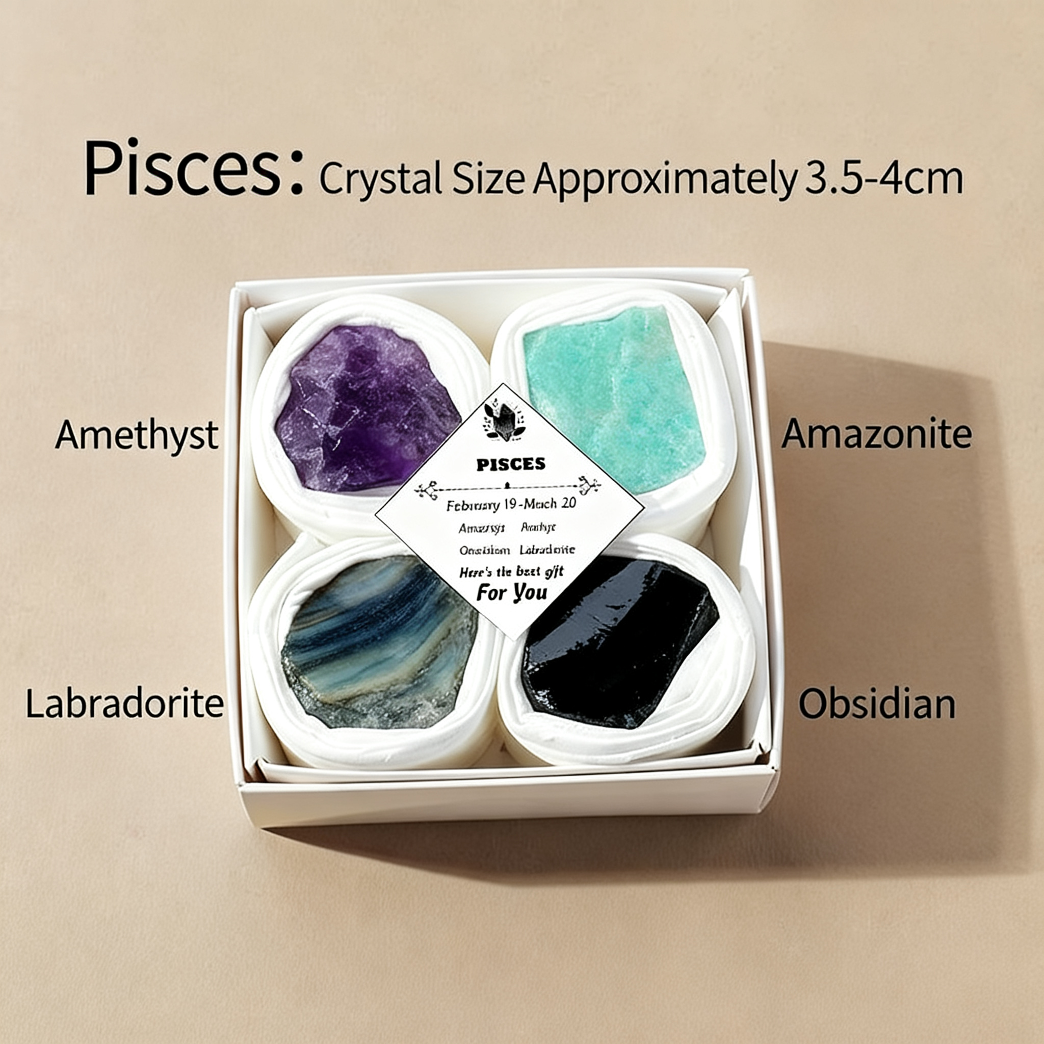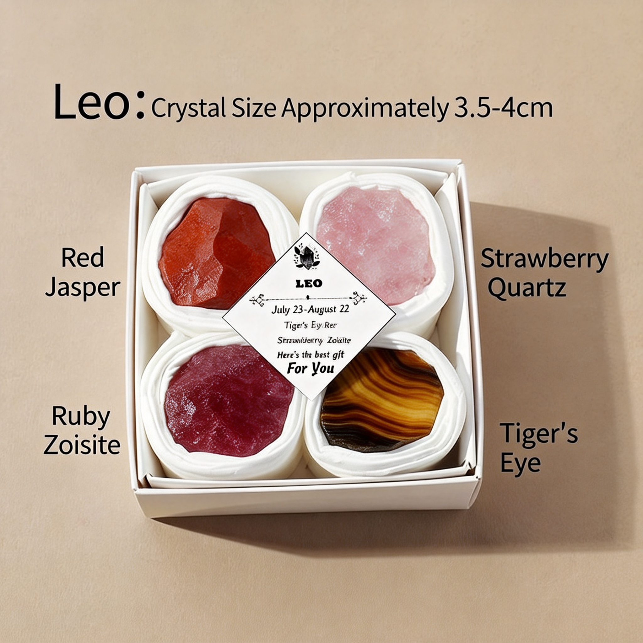 A: Wir legen jeder Box einen Leitfaden bei, der die Kristalle den Sternzeichen zuordnet, was es zum perfekten Geschenk für dich selbst oder einen Freund macht, auch wenn du neu in der Astrologie bist.