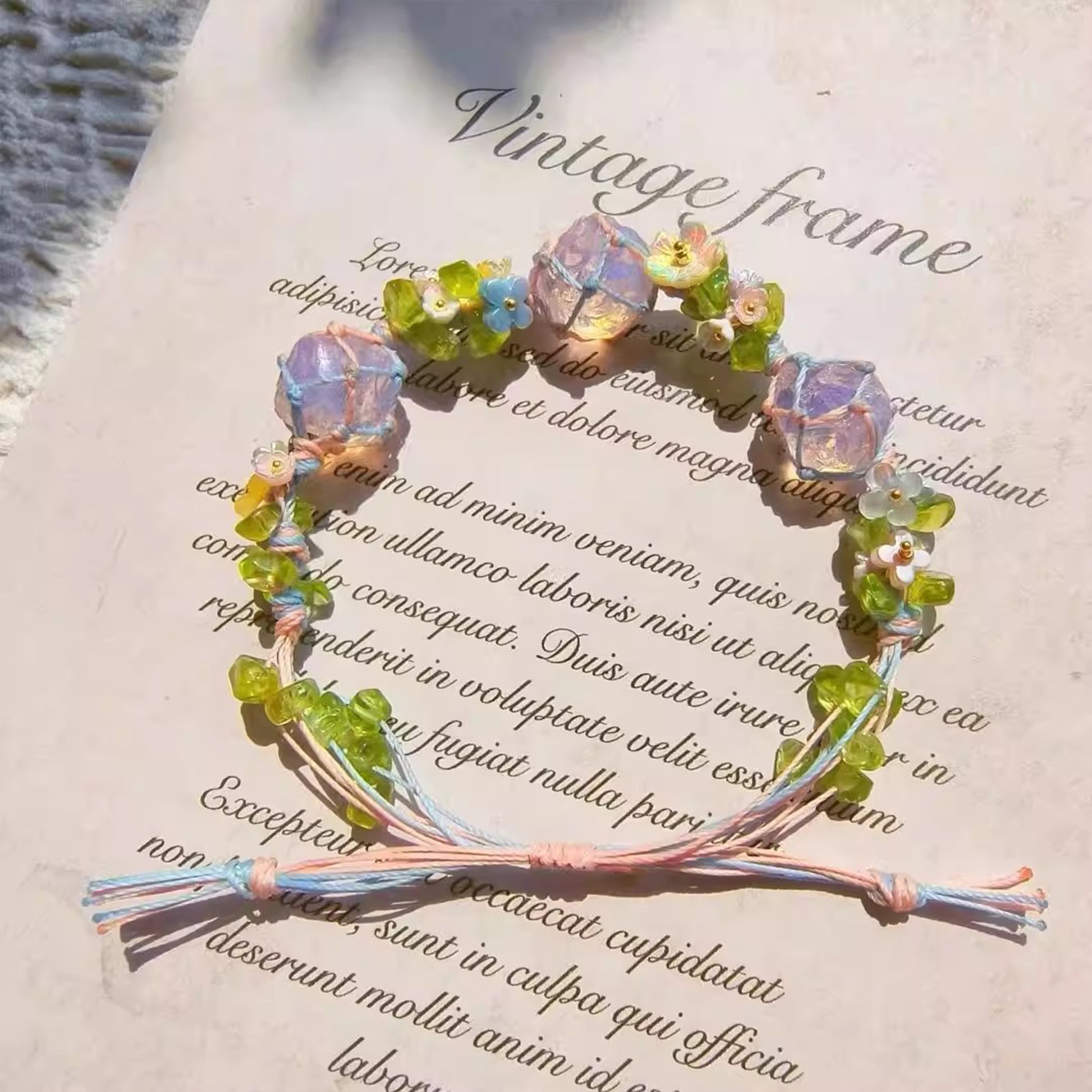 Tanzen Sie durch eine Wiese der Träume. Das "Gartenwalzer"-Armband ist eine zauberhafte Hommage an das Erwachen des Frühlings. Mit schillernden Pastell-Rohkristallen, kombiniert mit verspielten, handgeformten Blüten und üppigen grünen Wiesenperlen, ist dieses Schmuckstück ein tragbares Märchen. Reiki-aufgeladen, um Ihre Aura zu reinigen, neues Wachstum anzuziehen und Ihren Geist mit freudiger, blühender Energie zu erfüllen.