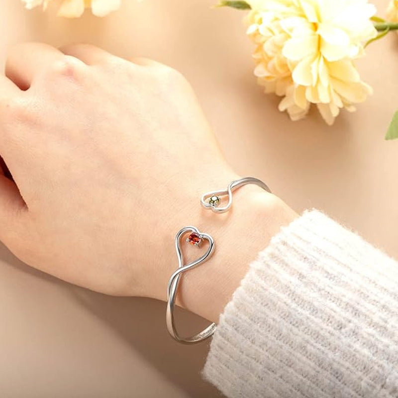 MOTHER AND DAUGHTER FOREVER LINK DOUBLE HEART CUSTOM BIRTHSTONE BRACELET