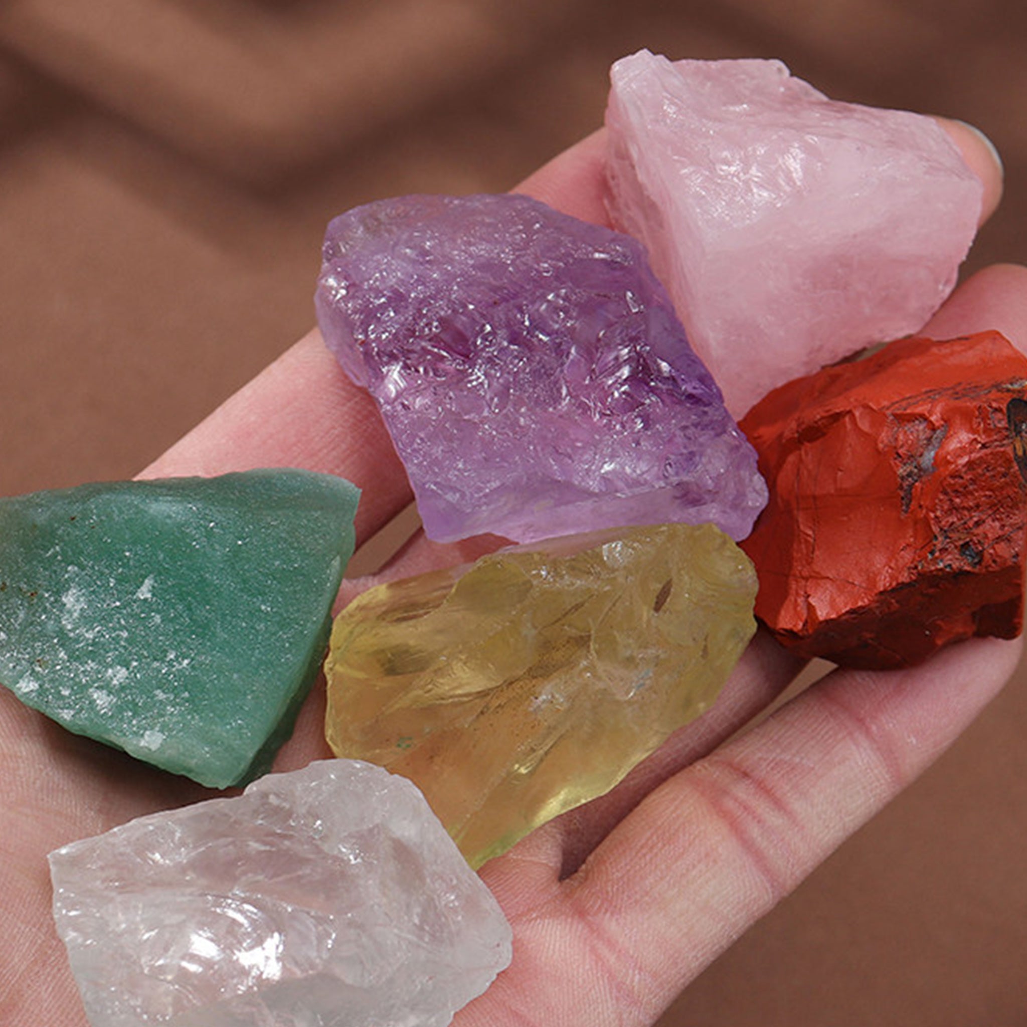 Qualitätshandwerk beginnt mit Qualitätsmaterialien. Diese 800g-Sammlung ist kuratiert, um Ihnen eine perfekte Balance aus Texturen, Farben und Heilenergien zu bieten. Jeder Stein befindet sich in seinem rohen, natürlichen Zustand, wodurch die organische Schönheit und die kraftvolle Vibration erhalten bleiben, die polierte Steine oft verlieren.