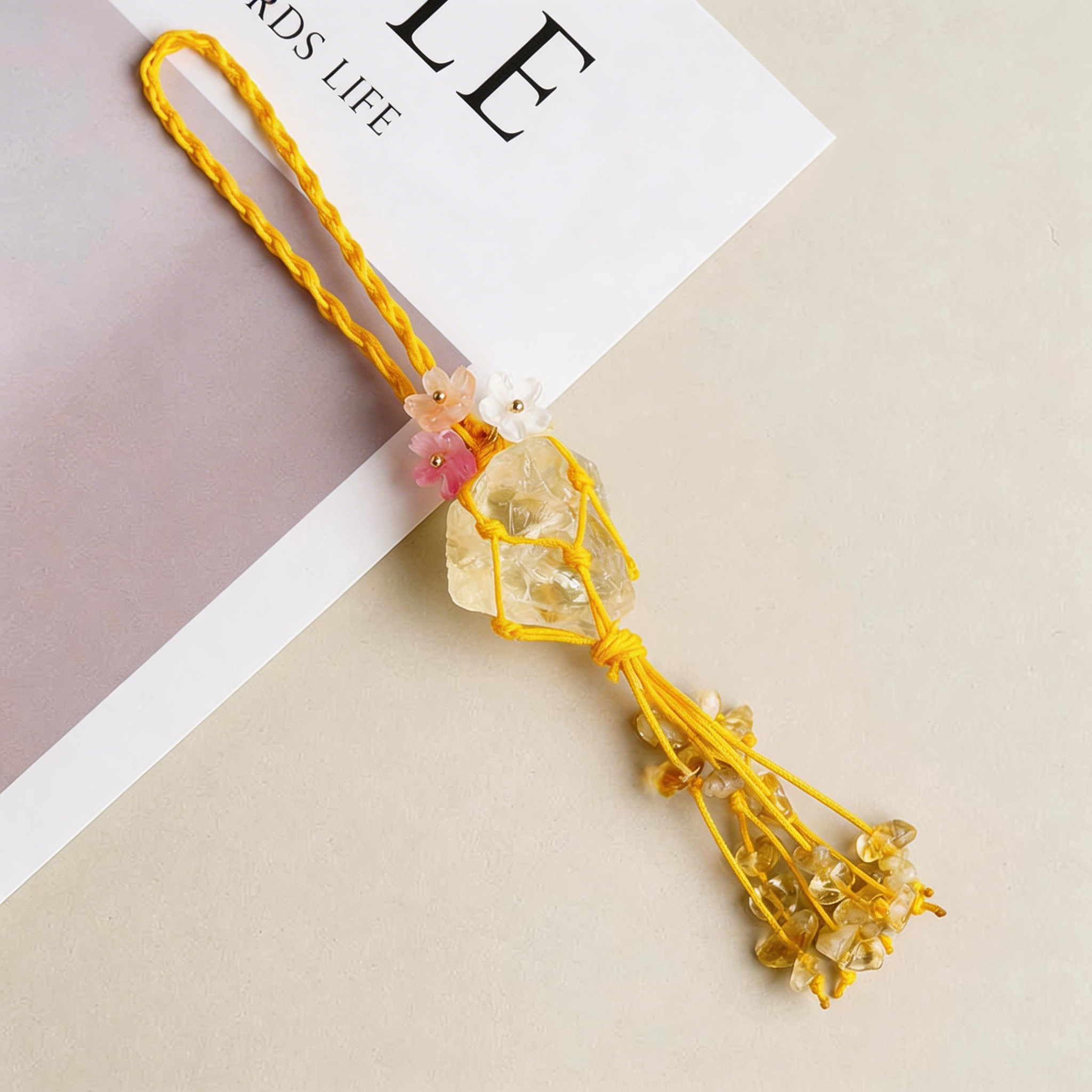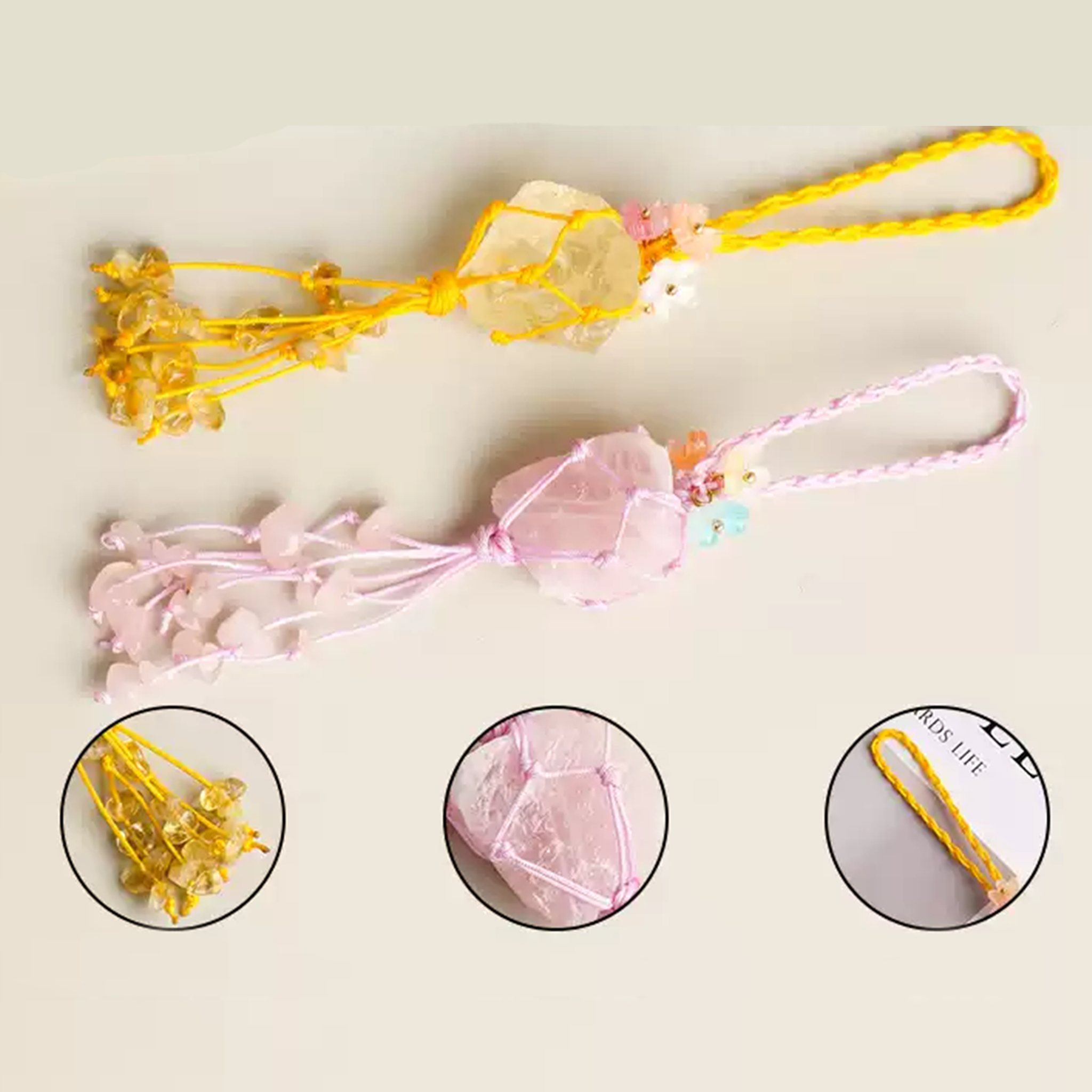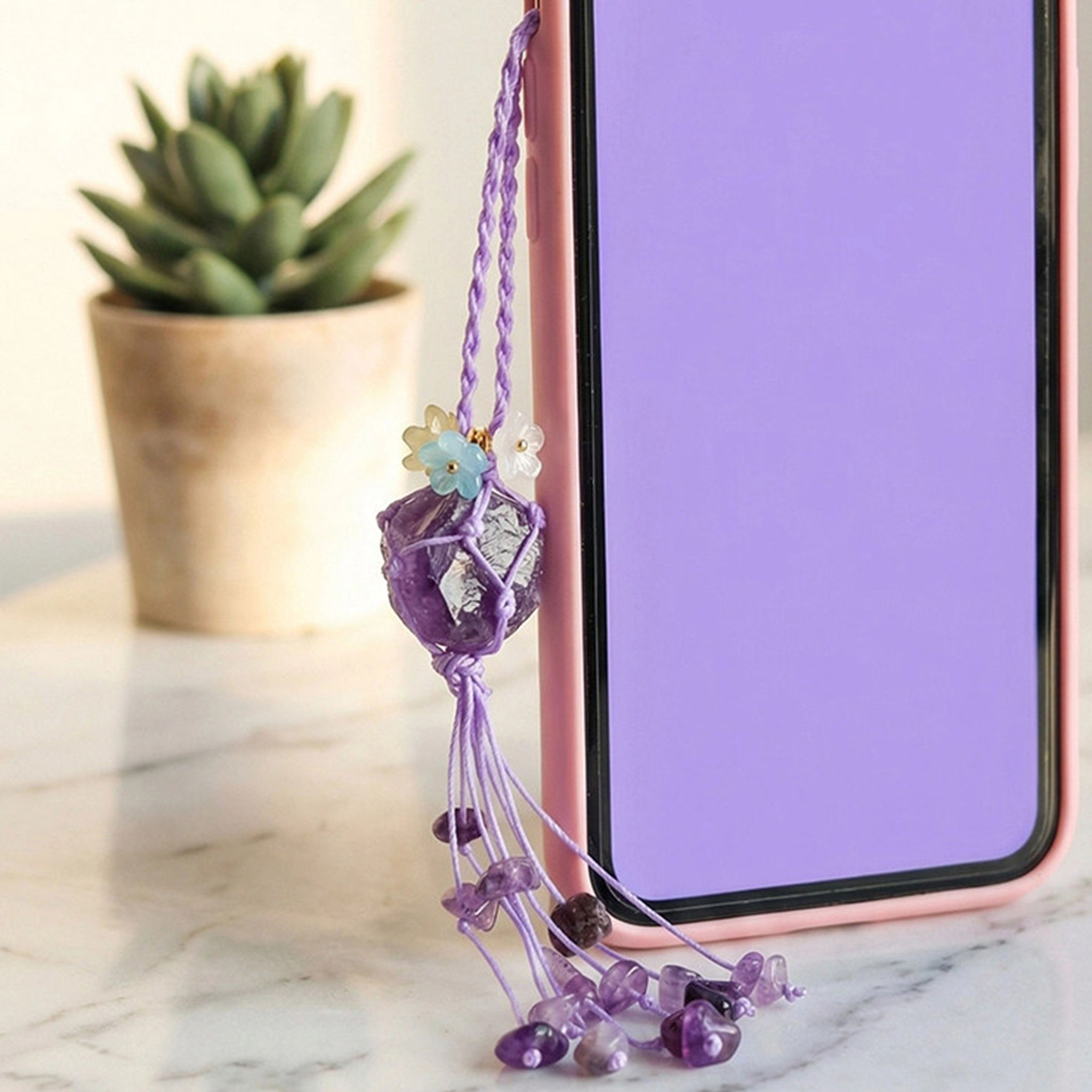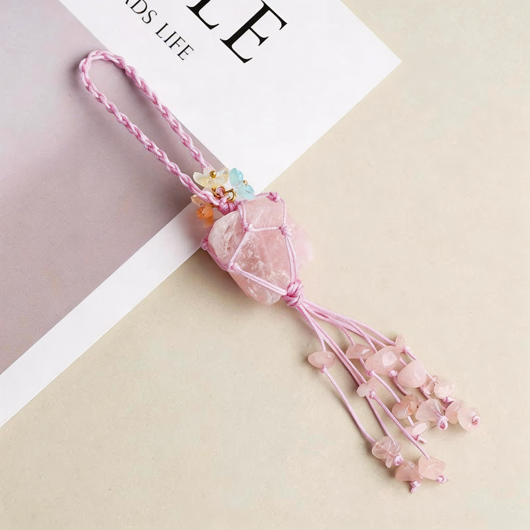 Porta la tua intenzione con te ovunque tu vada. Il nostro ciondolo "Energy Companion" è un accessorio stravagante, artigianale, pensato per aggiungere un tocco di magia alla tua vita quotidiana. Caratterizzato da un cristallo grezzo ad alta vibrazione avvolto in macramè annodato a mano con delicati accenti floreali, questo ciondolo si aggancia facilmente alla tua custodia del telefono, allo zaino, alla borsa o alle chiavi. Caricato con Reiki per mantenere il tuo campo energetico luminoso e protetto, ovunque ti porti la giornata.