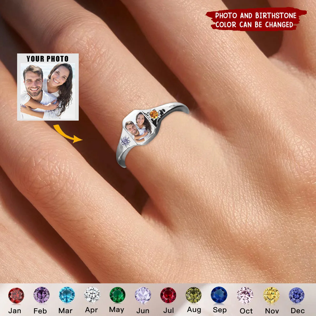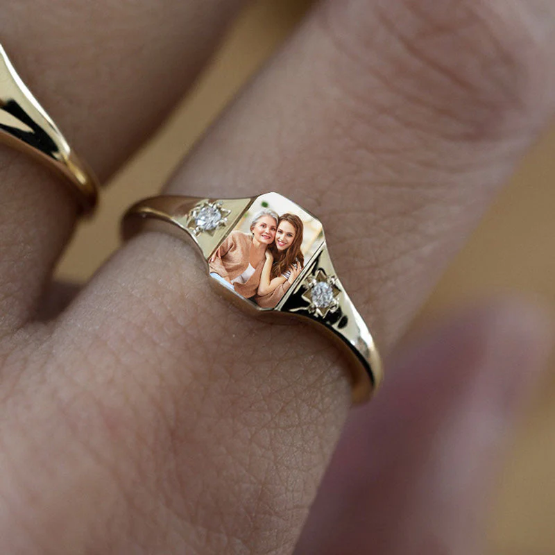 Our Photo Birthstone Custom Ring not only showcases a cherished photo but also incorporates birthstones of your choice, adding an extra touch of significance. It's the perfect way to celebrate life's beautiful milestones or honor a loved one.