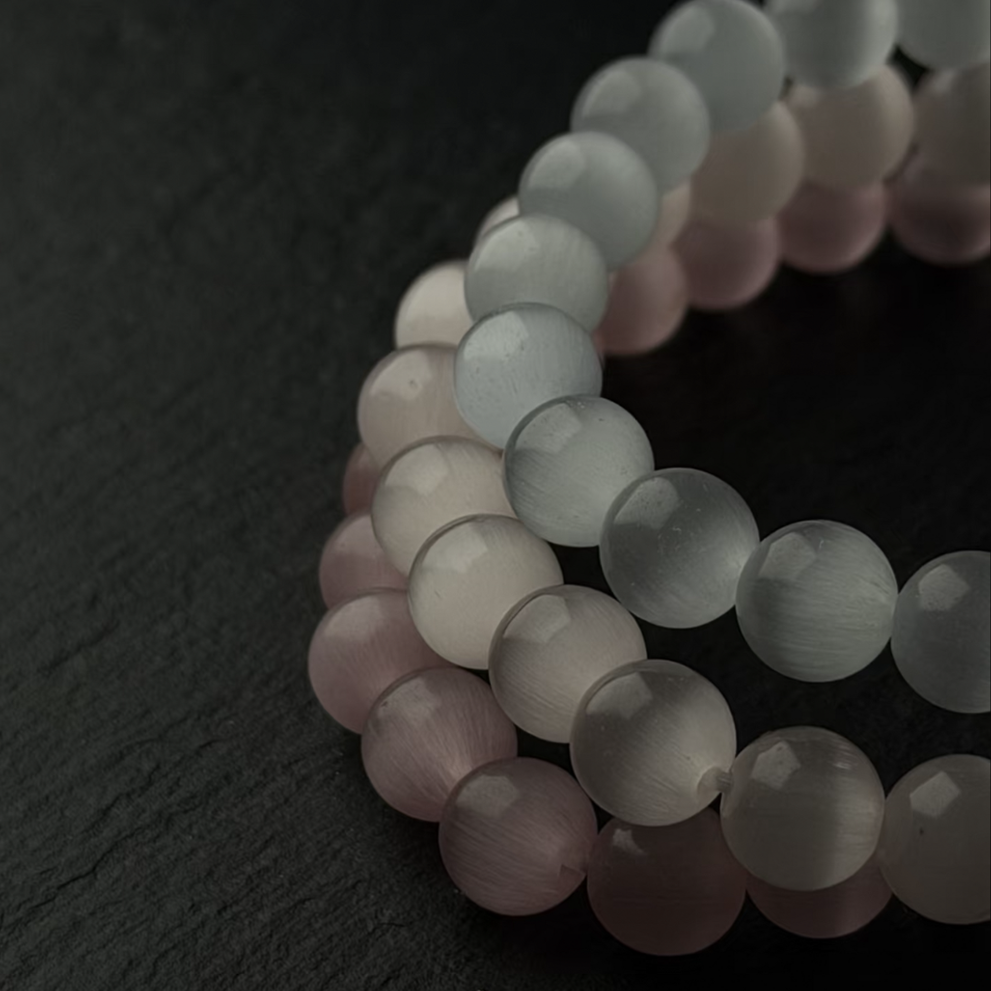 Capture the Light in Every Move There’s something hypnotic about the way Cat’s Eye stones capture and reflect light. With its smooth, polished beads and delicate color palette, the "Serene Glow" bracelet is designed to be the versatile staple in your jewelry collection. It’s light, comfortable, and carries an energy that feels as soft as it looks.